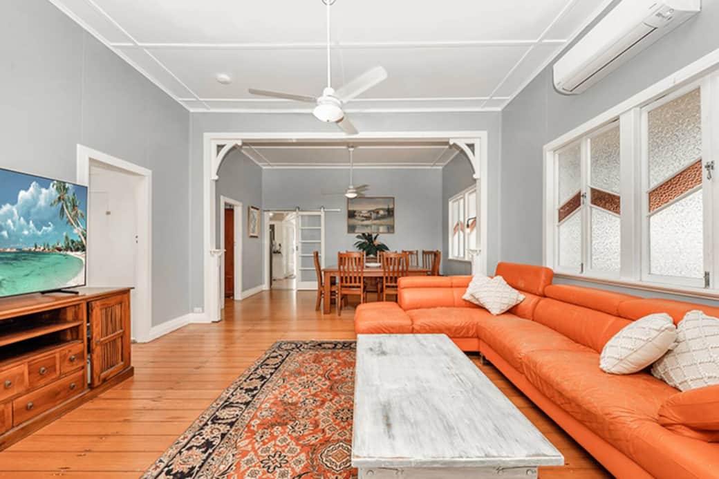 This original 3 bedroom 2.5 bathroom classic Queenslander has maintains its traditional character. Located just a 5 minute stroll from Townsville's Iconic Strand and 15 minutes to the CBD this home is perfectly situated for your stay in Townsville if looking for a large stand alone home :) This original Queenslander has plenty of room and is so close to The Strand, Queens park, Sports reserve, Gregory St shopping, cafes and restaurants and Coles. You will find 1 large bedroom with sofa, a second queen room, and a smaller bunk room. There is one full sized bathroom with 2 sinks, a bath tub, shower and toilet, and a second standalone toilet upstairs. And one not yet rennovated bathroom with shower downstairs. The kitchen windows opens out to the deck, garden and fire pit. A very spacious living area and large dining table, gives all guests plenty of room to relax. The entrance room is a lovely space just to sit in and read a book. With a fully enclosed garden, there's plenty of room for your car and one pet is welcome. Please note, we do not have mesh on the doors/gates to prevent your small dog escaping if this should be an issue. We don't have fly screens on windows if you are concerned about mossies. Please note there is a staircase up the entrance as shown in the photos. Please also note, the original queenslander windows do have gaps and there are no fly screens. We only accept 6 adults in total There must be “reasonable usage of electricity “ie max 40 kws a day. There is a smart meter installed. The laundry is downstairs under the house and there is one well loved washing machine. Coffee machine has since been replaced with a sunbeam barista max Guests have full use of the property Key box check in Location is everything E scooters are available in the vicinity Fresheyre is located just 5 minutes walk to the Strand. The Strand offers Cafes, restaurants and bars with a beautiful beach and back drop out to Magnetic Island. The CBD and brand new Queensland Country Stadium are all moments away. Spacious Fresheyre is set on a tree covered block. The home is fully air conditioned with high ceilings, fans and traditional spaces. The kitchen opens out with a full width servery bi fold window to a bar area that transforms the space bringing the outdoor area to life. Bedrooms are comfortable with a huge main complete with your own lounge. Large bathroom with Double sinks bath and separate shower make for an intimate space. There is a fire pit in the garden. The bedroom configurations are as follows- • King bedroom • Queen Size Bed in second bedroom • Double Size Bed with bunk in the third bedroom • Bathroom - Shower and separate Bath - Vanity, Loo - Shampoo, Conditioner, Body Wash • Kitchen - Dishwasher, Large Fridge / Freezer, Microwave, Oven, Cooktop, Toaster, Kettle - Glasses, Pots, Pans, Cutlery, Utensils etc etc…. The house also comes with - • Free Unlimited WiFi • 65'' Smart TV in living area • Outdoor Furniture on the Patio • Full Cookware and Tableware This character filled home is located only- -2 mins walk to the strand beach -5 mins walk to Coles and a local shopping center -5 mins drive to the CBD -8 mins drive to Townsville's new stadium There is plenty of off street parking with a large 2 bay undercover carport